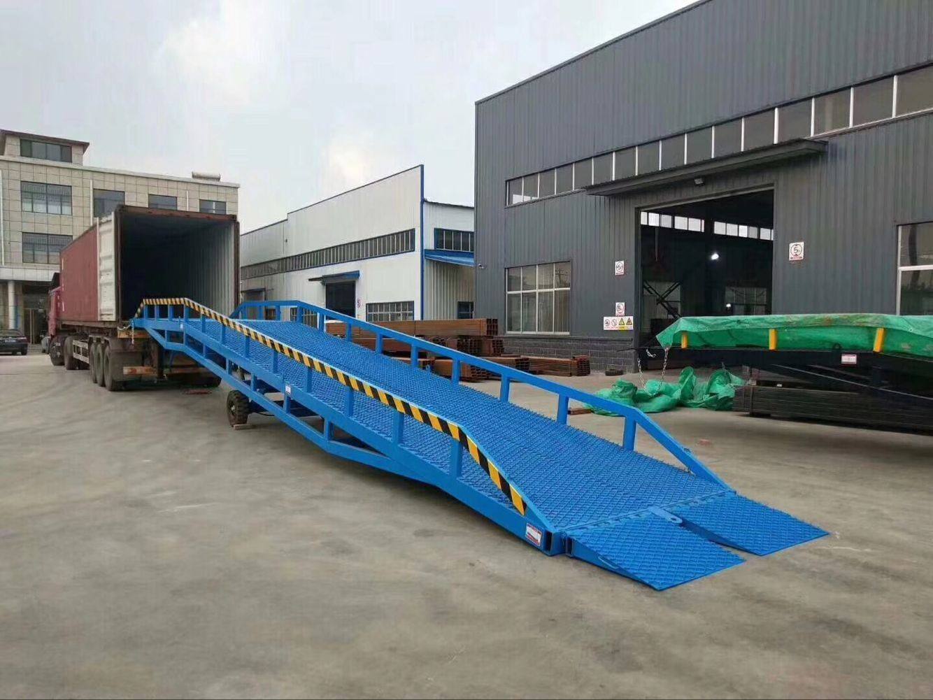 挪動式登車橋是牢固式登車橋的姊妹產物,它首要利用在車站、船埠、工場堆棧等貨運量大,但又不便利做貨臺的場合,可以或許在空中和運輸車輛之間搭起一座橋,使叉車使得地行駛,到達裝卸貨目標,該裝備一端與空中打仗,另外一端搭接在車箱后緣上,并能按照差別車型及卸車進程中車箱的變更,主動調劑高度,從而大大進步任務效力。主體局部接納矩形管焊接而成,強度高,承載才能大;液壓體系接納入口手壓泵,寧靜耐用;橋面接納高強度鋼板網,增添了摩擦系數,便于叉車的行駛,加重了橋體的本身分量,使挪動加倍矯捷。